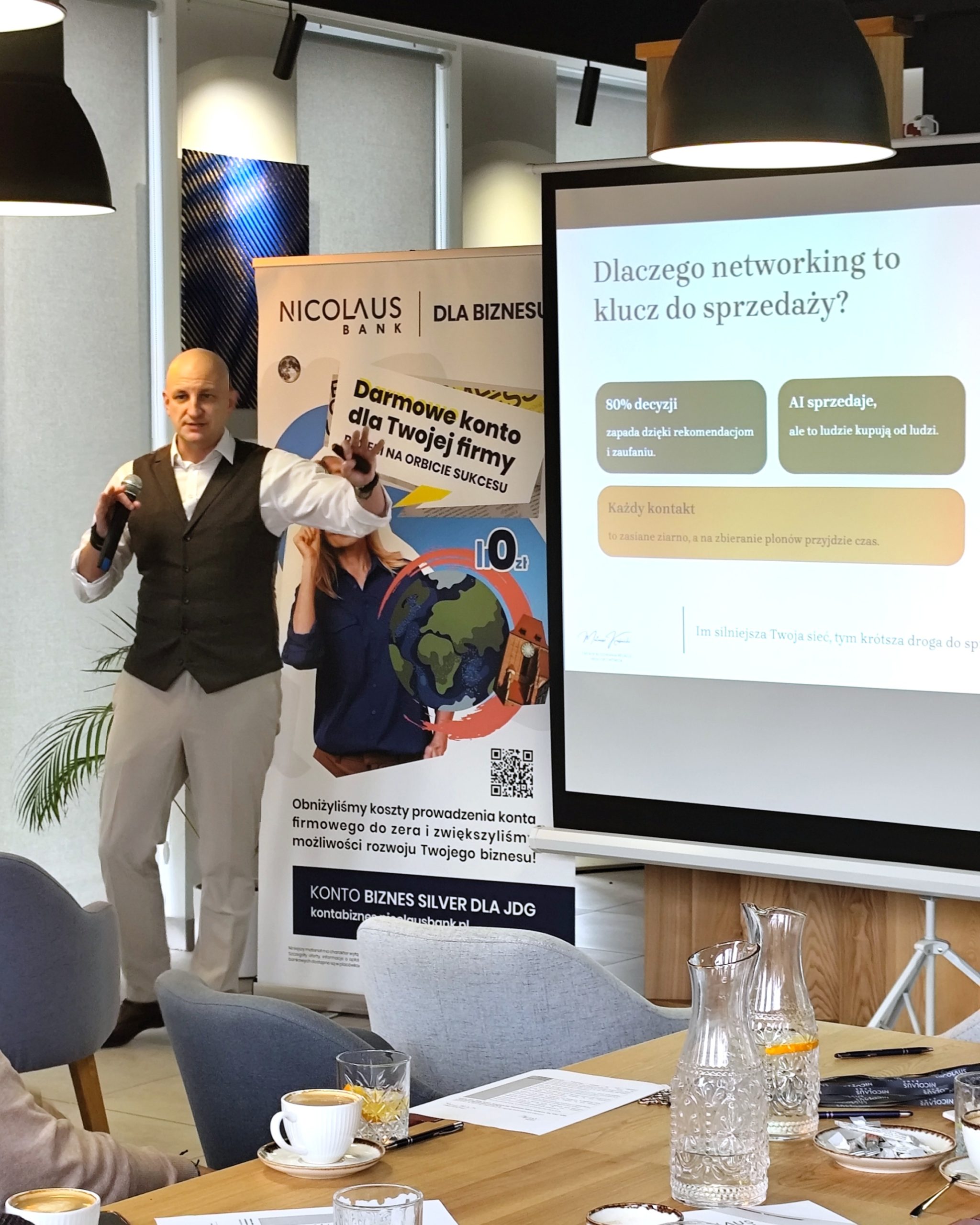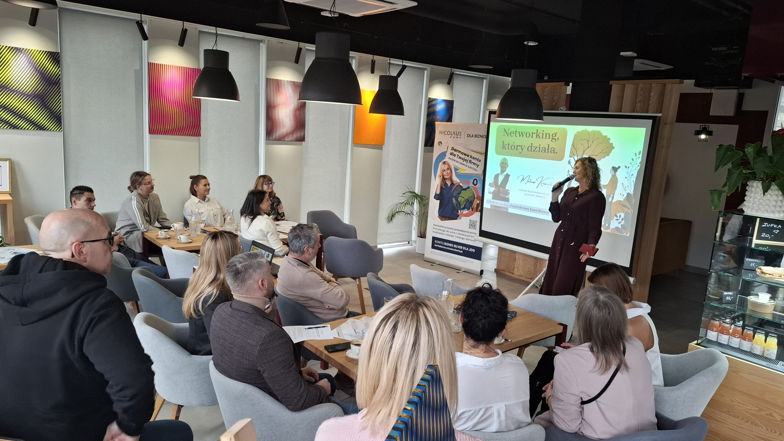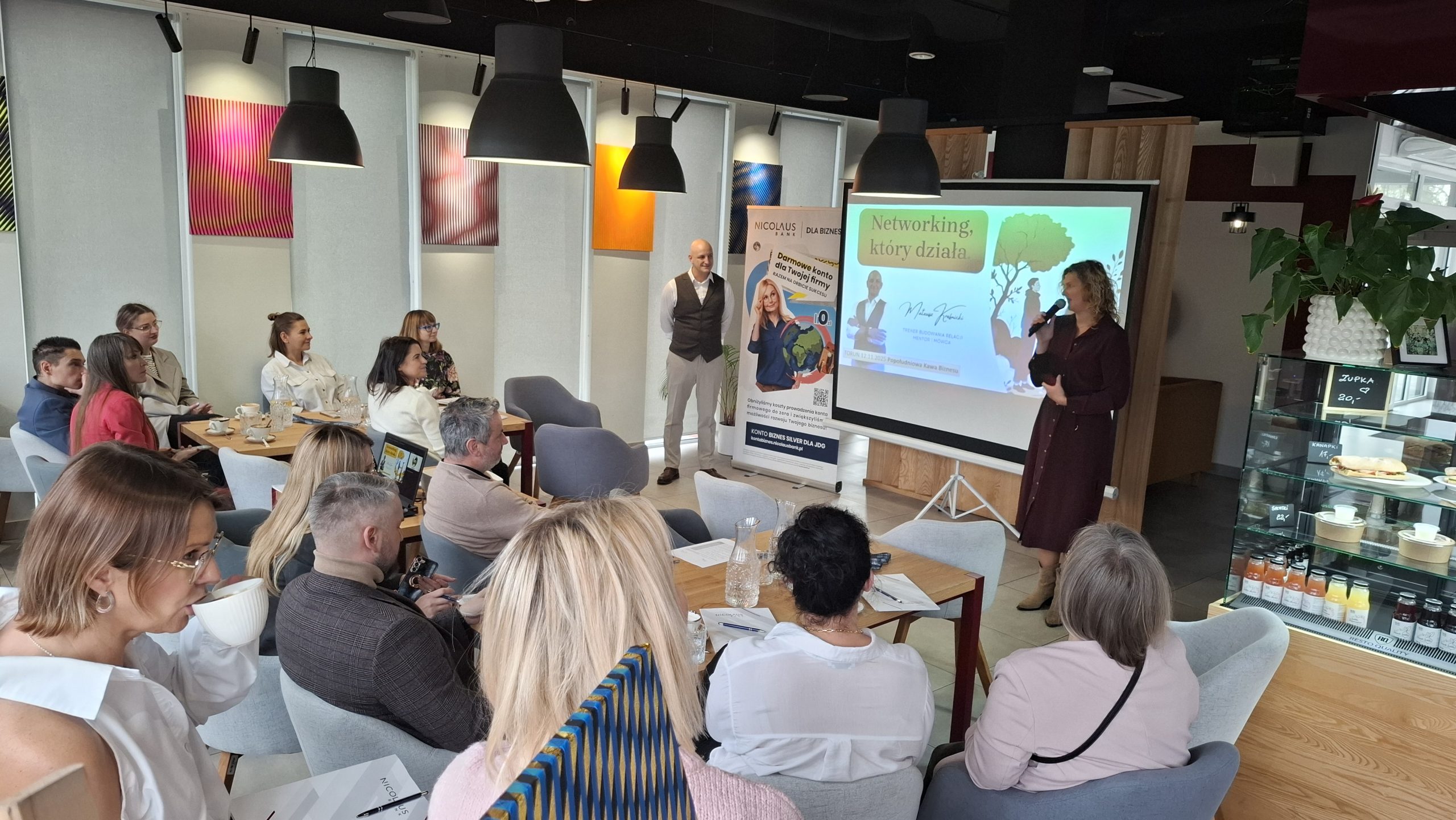 12 listopada ponownie mogliśmy się spotkać w Nicolaus Bank Cafe, aby uczestniczyć w spotkaniu z cyklu Popołudniowa Kawa Biznesu. Tym razem prowadzący – Mateusz Kraśnicki, wprowadził nas w świat networkingu. Pokazał, że networking to coś więcej niż wymiana wizytówek czy rozmowa przy kawie. To sztuka budowania relacji, które otwierają drzwi do klientów, partnerów i nowych możliwości.